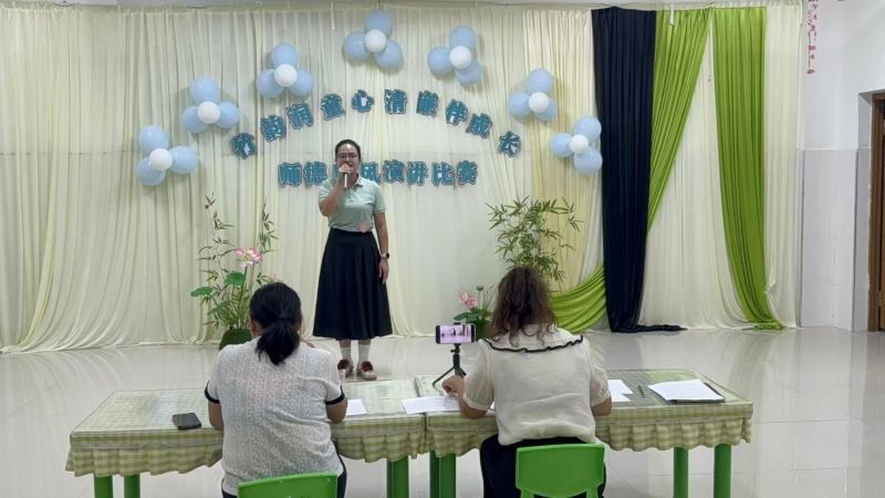 活动伊始,园领导着重强调了师德师风建设与清廉教育在幼教工作中的核心地位,比赛现场各位教师紧扣“竹韵”与“清廉”两大核心主题,以日常教学中的真实案例为切入点,将“清廉”从抽象概念落到具体行动。她们用亲身经历深刻剖析了对师德师风“清廉”内涵的理解;更以“竹笋破土的生机”为喻,抒发对幼教事业的赤诚热爱,坚定表达了以清廉师风培育和守护幼儿纯真心灵的决心。
