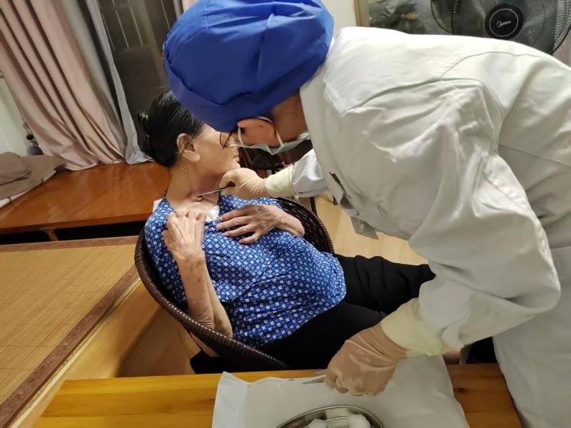 针对长期卧床、生活不能自理的特殊群体,外科党支部的党员专家组成伤口造口小组,携带专业护理工具包上门服务,为行动不便的慢性伤口及术后伤口愈合不良患者满足了足不出户完成伤口换药的需求。医技党支部的临床药师团队则随工作队一同入户,为慢性病患者提供了实用的居家药学服务,给予用药评估和用药教育,指导储存和使用药品,进行家庭药箱管理,全方位保障群众用药安全,实现健康守护“零距离”。