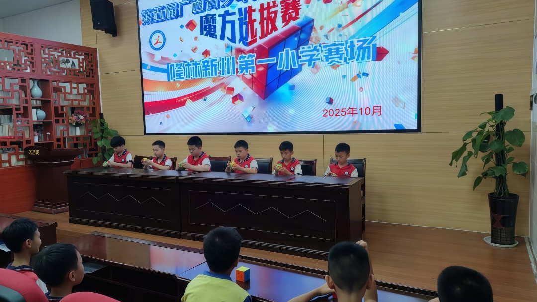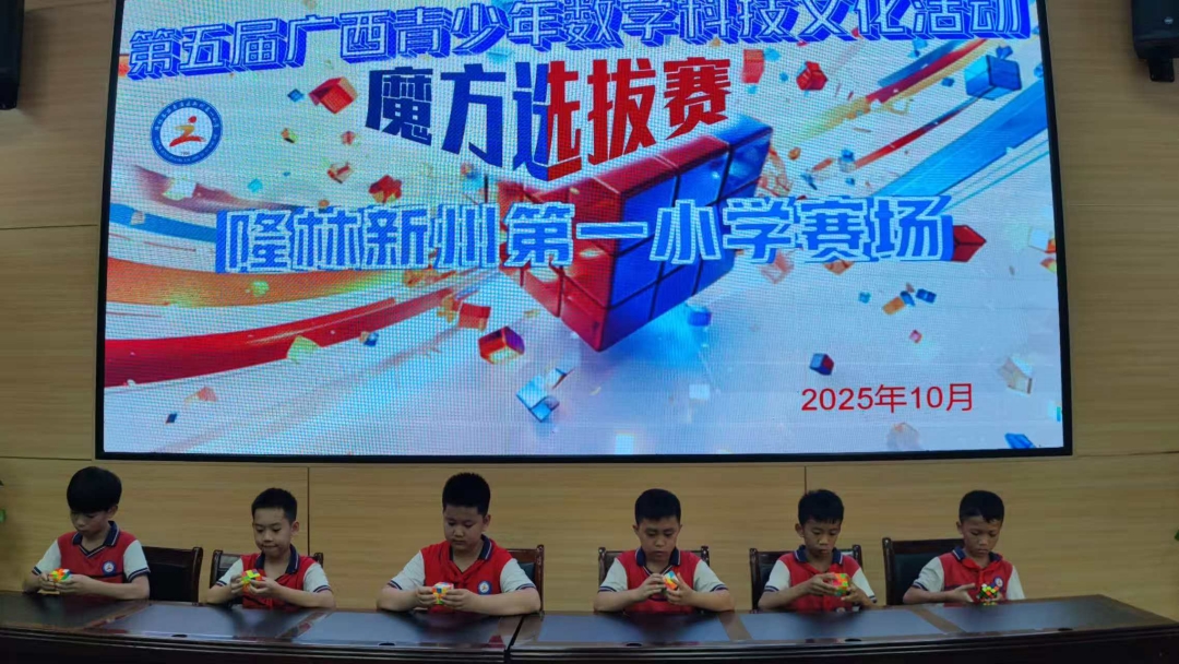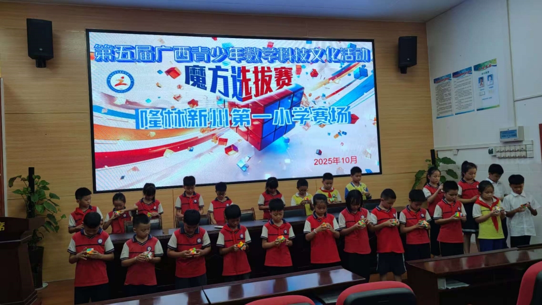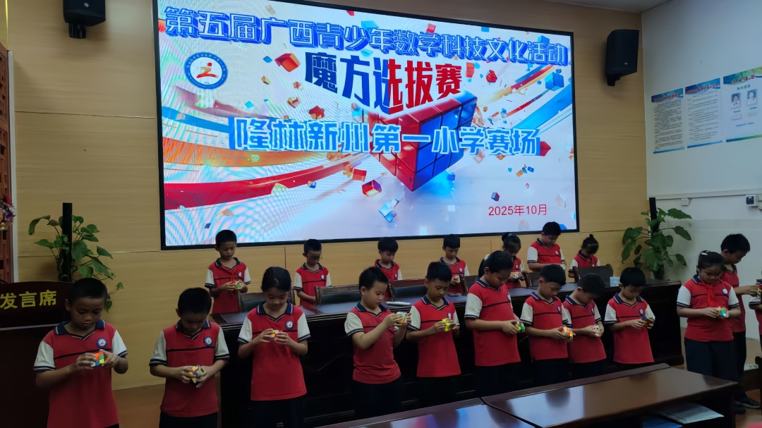 今日广西百色讯 2025年10月13日,隆林新州第一小学依照第八届广西青少年科普知识竞赛暨第五届广西青少年数学科技文化活动的相关要求,开展了校园魔方选拔赛,全校共40个班级参与,班级海选总人数达856名同学,每班选拔出5名同学参加校级初赛,经过分年级初赛后,各年级选拔出6名同学进入校级决赛,经过激烈的选拔赛,六2班的张皓哲同学以37秒的成绩夺冠,五4班的杨源同学41秒,五2班的肖泓宇同学44秒,六2班的黄森同学46秒依列次席。