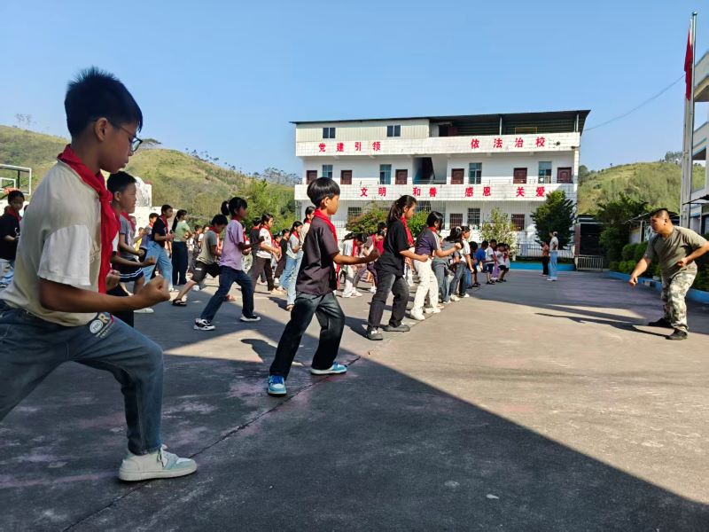 “准备格斗……哈!”现在每日大课间,双垌村小学的操场上便响起阵阵铿锵有力的呐喊。学生们目光如炬,马步扎实,在专业教官的指令下,熟练地操练起“16式军体拳”。从“准备格斗”到“弓步冲拳”,从“穿喉弹踢”到“马步横打”,一招一式,虎虎生风,展现了双垌村学子昂扬向上的精神风貌。这标志着该校将军体拳全面引入大课间的创新举措已取得显著成效。