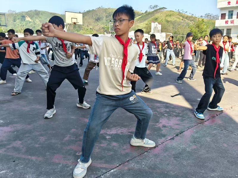 东平镇双垌村小学将军体拳成功融入大课间,是“五育并举”教育理念的生动实践。该校校长朱佳玲表示,未来,学校计划将16式军体拳作为学校特色体育项目长期开展,并适时举行汇演比赛,进一步深化国防教育与体育教学的融合,以潜移默化的方式在学生们心中根植爱党爱国爱军的浓厚情怀,为培养体魄强健、意志坚定、担当有为的新时代少年奠定坚实基础。(林辉媛)