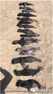 “纳米比亚海洋保护”组织今年10月报告在纳米比亚海滨地区沃尔维斯湾的佩利肯角海岸发现了超过7000只死亡的母海豹及其幼崽。该组织认为,由于当地鱼群今年远离大陆活动,造成沃尔维斯湾附近的海豹觅食困难。