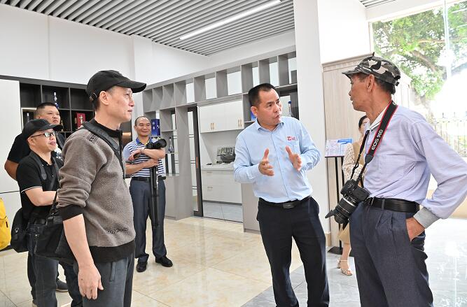 活动中,广西祖昌门业有限公司工会主席向大家介绍了祖昌企业的生产状态、发展前景和文化特色等,并带领摄影家协会会员参观了祖昌党员活动室、产品展示厅以及员工工作车间。摄影家协会会员一面听介绍,一面用镜头记录下了精彩的画面。
