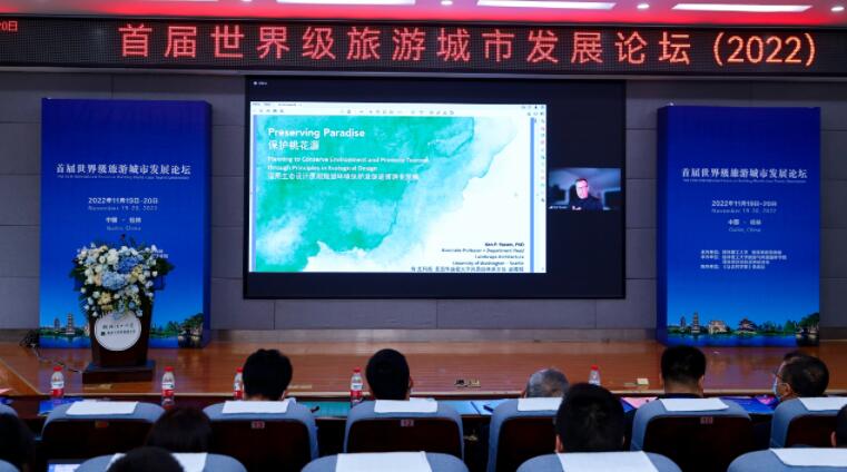 论坛上,肯·尤科姆副教授介绍了如何运用生态设计原则规划环境保护及促进旅游业发展;瑞恩·麦德森教授以美国著名旅游城市萨凡纳为例,介绍了体验旅游与大众旅游消费领域的经验和做法;张辉教授基于世界级旅游目的地内涵及主要条件的分析,从世界级旅游城市旅游业态、旅游方式、便利化体系等方面提出桂林建设世界级旅游城市建议;唐晓云研究员从城市与旅游共生关系分析,探讨以科技和文化引领桂林世界级旅游城市建设路径。