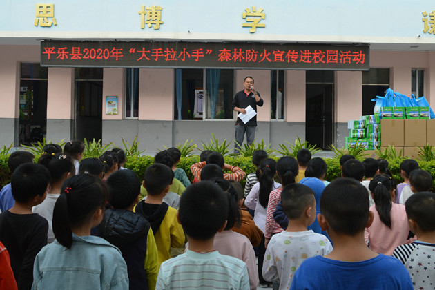 今日广西平乐讯(通讯员 黄丽君) 10月30日下午,平乐县林业局一行5人,在局党组书记李忠的带领下,来到平乐三小开展“大手拉小手”森林防火宣传进校园活动。