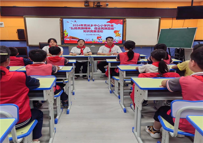 隆林各族自治县是一个多民族聚居的地区,拥有丰富的民族文化和传统,各民族在长期的共同生活中,形成了相互尊重、相互包容、相互帮助的良好关系。为了加强学生对不同民族的了解和尊重,促进民族团结,提高学生的民族团结意识。培养学生的爱国主义情感和文化自信通过活动,营造和谐、包容的校园氛围。克长乡中心小学于2024年4月28日下午开展“弘扬民族精神,促进民族团结”知识竞赛活动。