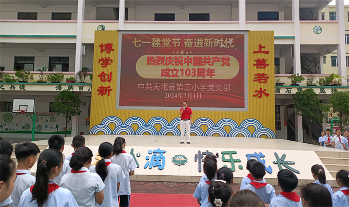 今日广西河池讯 7月1日上午,天峨县第三小学开展“请党放心 强国有我”宣讲活动,此次活动旨在引导少先队员们深刻理解和感悟党的光辉历程和伟大成就,激发他们听党话、感党恩、跟党走的坚定信念,进一步弘扬爱国精神,加强未成年人思想道德建设。