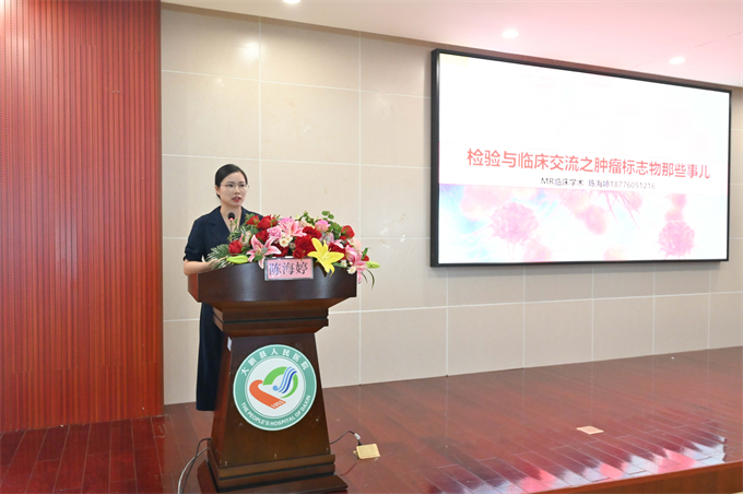 深圳迈瑞体外诊断化学发光临床学术经理陈海婷通过图文并茂的授课方式,围绕肿瘤概述及常见肿瘤标志物、肿瘤标志物临床核心价值、肿瘤标志物临床应用原则等方面进行讲述,进一步调动了全院医务人员的学习积极性和热情,加强了临床医护人员的专业能力。