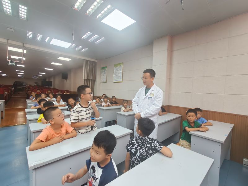 在互动交流环节,孩子们纷纷举手发言,积极、大胆地把自己心中疑问提出来,许医生亲切、耐心的向大家一 一作了解答。与此同时,许医生还通过牙齿模型、牙刷道具和刷牙小口诀,告诉同学们如何正确刷牙、如何健康饮食、减少甜食摄入去改善口腔健康、预防龋病。通过本次讲座,同学们对儿童龋病防治有了进一步的认识,并了解了正确的刷牙方法。