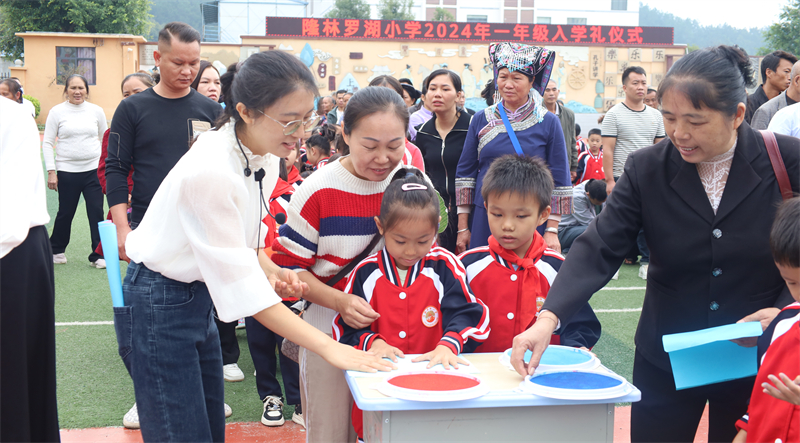 今日广西百色讯 “一年好景君须记,最是橙黄橘绿时。”为给一年级的新生营造浓厚的入学氛围。2024年10月12日,隆林罗湖小学举行了一场主题为 “崇礼尚乐,稚梦启航”的一年级新生入学仪式。学校领导及部分老师、一年级学生与家长共1000余人参加仪式,与孩子们一起共赴这场盛大的“约会”共同见证这一庄严时刻。