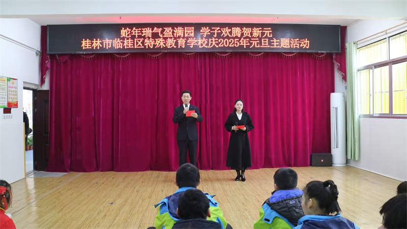文艺汇演在热烈的气氛中拉开帷幕。临桂区特殊教育学校于校长发表了简短而热情的新年致辞,向全体师生致以新年的祝福和美好的期望。随后,一系列精彩纷呈的节目轮番上演,为观众带来了视觉与听觉的盛宴。