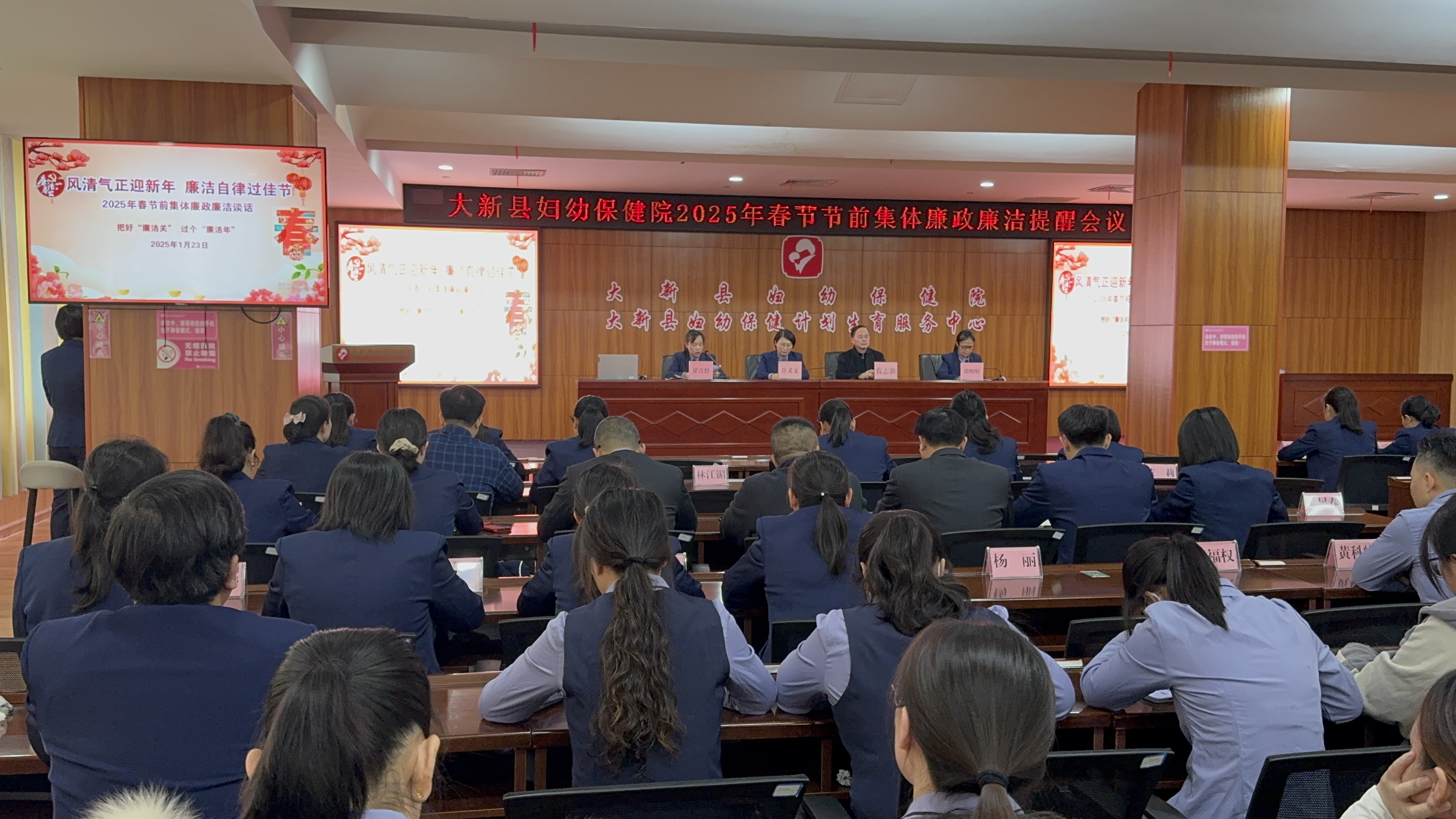 今日广西崇左讯 1月23日,大新县妇幼保健院成功召开2025年工作会议。会议围绕春节廉政提醒、安全生产部署、2024 年总结及2025 年规划展开,全体干部职工共同参与,为我院未来发展擘画蓝图、凝聚力量。