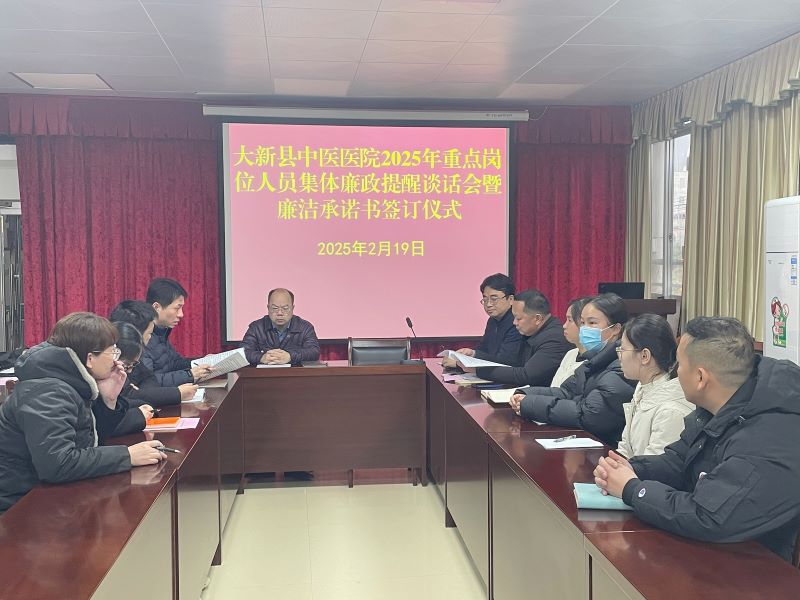 大新县中医医院召开2025年重点岗位人员集体廉政提醒谈话会
