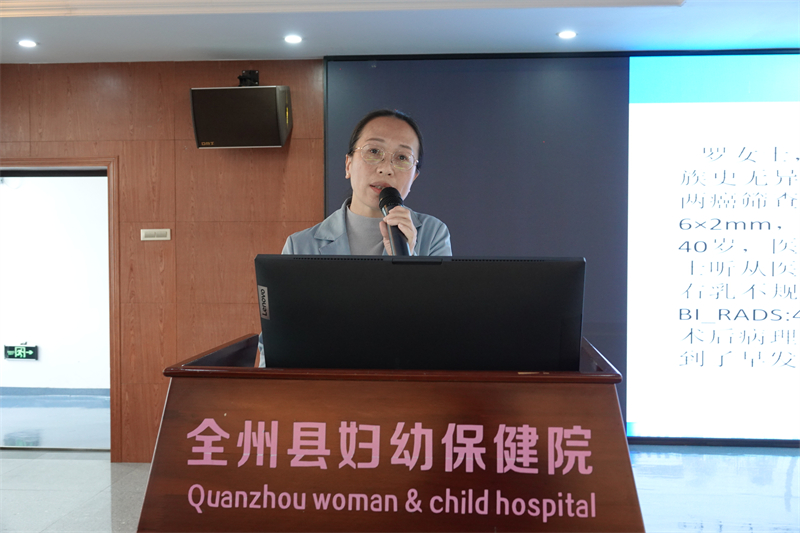 全州县妇幼保健院主任医师蒋红梅在会上向大家介绍了妇科目前发展现状,并邀请参训同仁会后参观乳腺保健门诊、交流建议。
