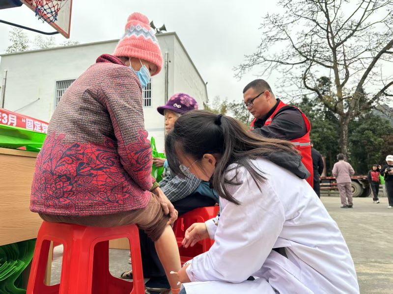 医护人员为居民测量血压、血糖等常规检查,并结合中医把脉问诊,详细询问他们的身体状况和日常用药情况。对于老人提出的各种健康问题,医生们都给予了专业、细致的解答,并提供针对个人的个性化医疗建议和健康指导。