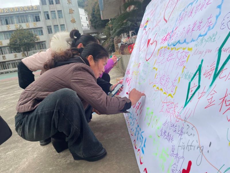 在绘制祝福展板环节中,老师们拿起画笔,用心描绘出一幅幅充满创意与温情的作品。展板上不仅有对高三学子的鼓励话语,还有寓意深刻的图案和色彩斑斓的装饰。每一笔每一画都凝聚着她们对学生的殷切期望与美好祝愿。展板完成后,将被放置在校园显眼处,成为高三学子奋斗路上的精神鼓舞,时刻提醒他们:老师们的关爱与支持始终相伴左右。