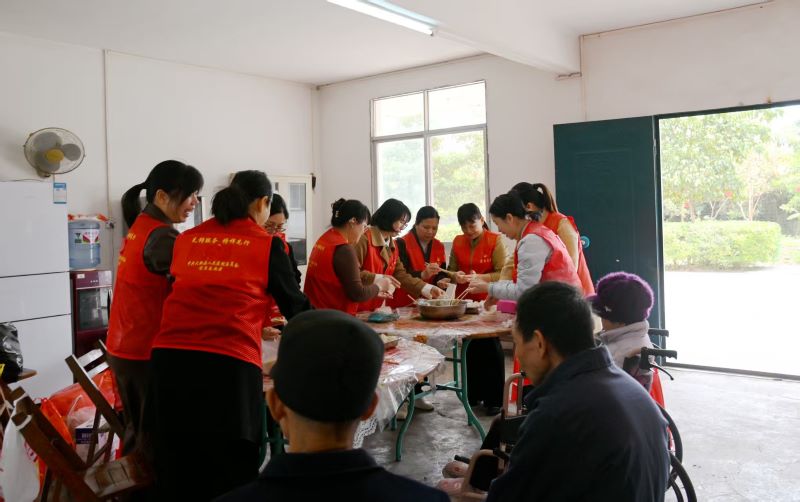 临近中午,志愿者们与老人们围坐在餐桌前一起包饺子。大家分工协作,调馅、包制,烧水,动作娴熟,气氛融洽。当热气腾腾的饺子端上桌,老人们品尝着这份 "家的味道",纷纷点赞:"饺子香,心里更暖!"