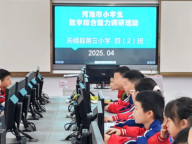 今日广西河池讯 4月23日,天峨县第三小学针对四年级学生开展数学综合能力调研活动。此次活动以“双减”政策为导向,通过创新测评模式全面检测学生数学核心素养,为2025年国家义务教育质量监测(以下简称“国测”)奠定基础。