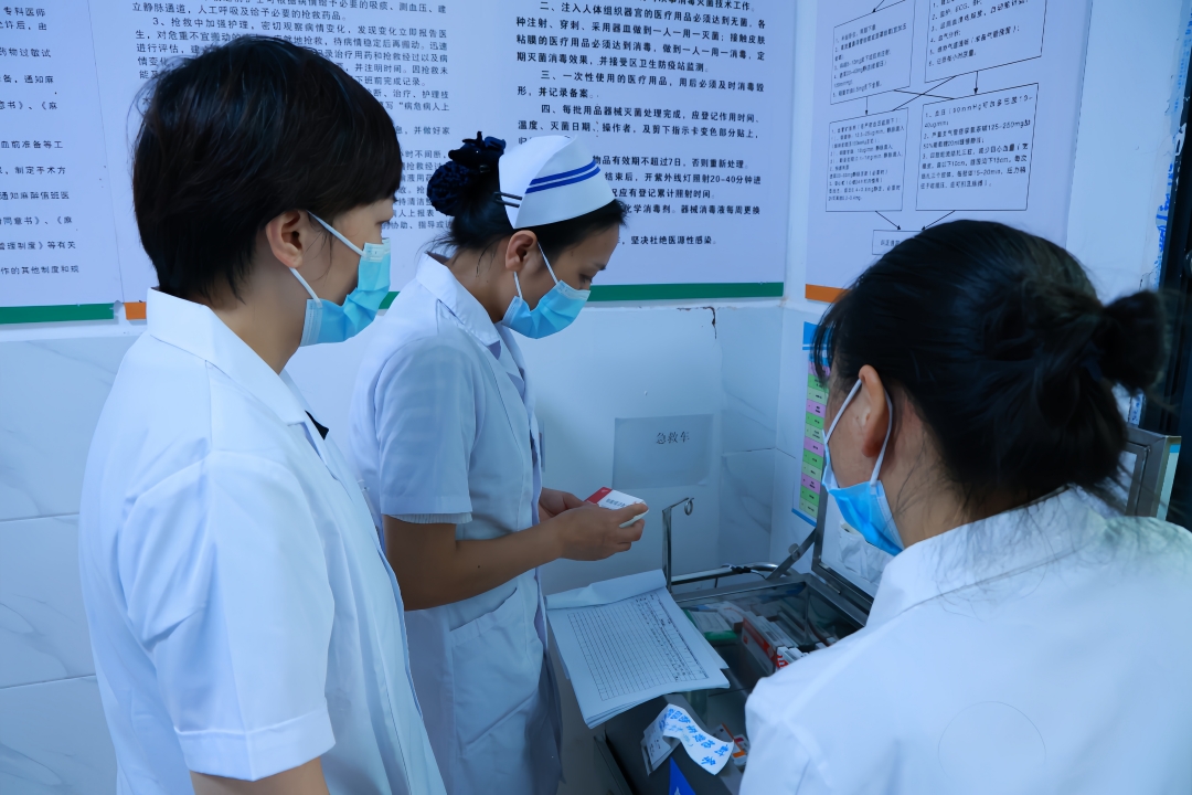 在胸痛单元建设指导环节,心血管科专家与卫生院医护人员围绕胸痛单元建设标准展开交流,结合临床案例详细讲解胸痛病人的快速识别流程、院前急救衔接要点及院内规范诊治路径,指导卫生院完善胸痛患者接诊登记制度与多学科协作机制;康复医学科专家通过现场示范针灸取穴、推拿手法,结合典型病例分析艾灸、拔罐等技术的适应症与操作禁忌,对基层医务人员在中医适宜技术应用中遇到的问题逐一解答,帮助其提升实用技术操作规范性与临床应用能力;护理专家团队则同步开展护理管理指导工作,她们先后走进治疗室、病房、抢救室区域开展细致检查,重点查看药品分类存放规范、有效期管理及无菌操作流程执行情况,检查护理记录与患者实际病情的吻合度,逐一核对除颤仪、呼吸机等急救设备的完好状态与应急启动速度,检查急救药品的补充记录与有效期,指导基层护士规范执行抢救流程与护理配合要点,帮助基层护理团队全面提升专业服务水平。