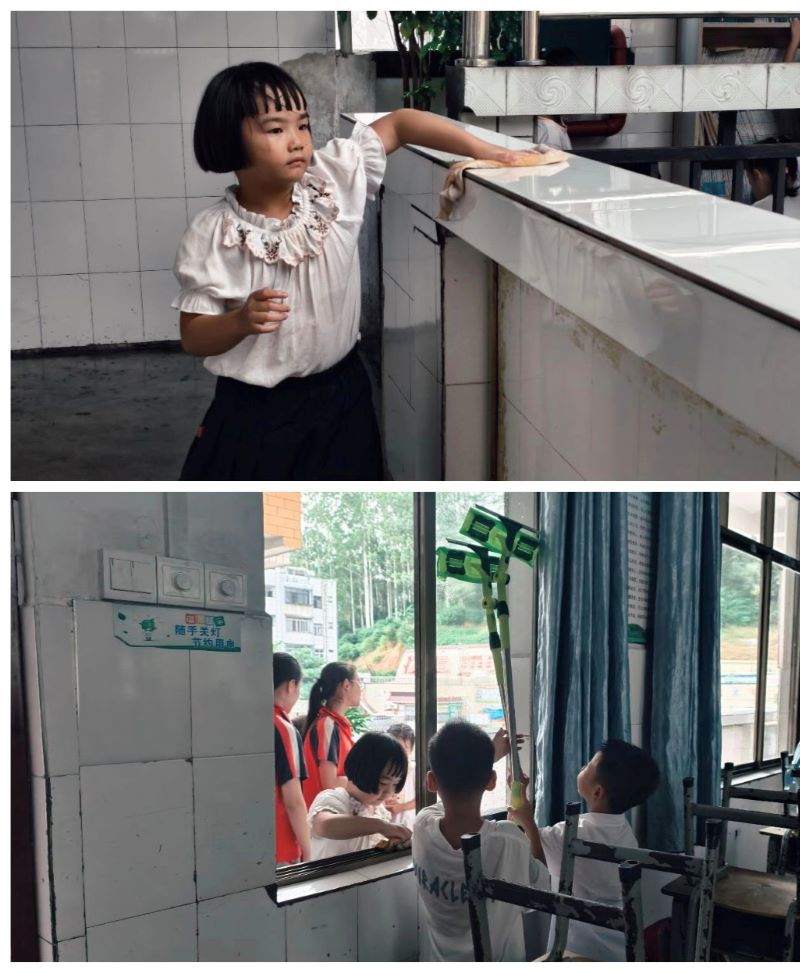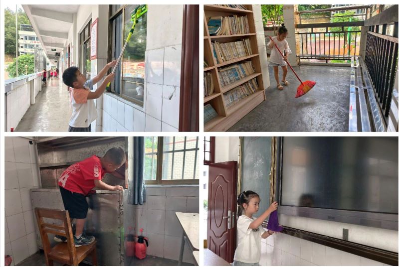 活动伊始,各班级在班主任带领下迅速行动。教学楼内,学生们手持扫帚、抹布,对教室门窗、黑板槽、图书角等区域进行深度清洁。经过师生们的共同努力,教室窗明几净,桌椅摆放整齐;走廊一尘不染,文化墙熠生辉。