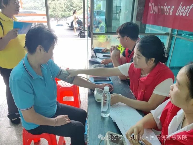 义诊现场,灵川县人民医院心内科的医护专家们竭诚为市民提供了疾病咨询与健康宣教服务,就心脏疾病的危害、症状的早期识别、日常生活自我管理的重要性等内容为前来咨询的患者进行了一对一的讲解。医护人员为百姓进行免费的测量血压等医疗服务,帮助百姓了解自身健康状况。