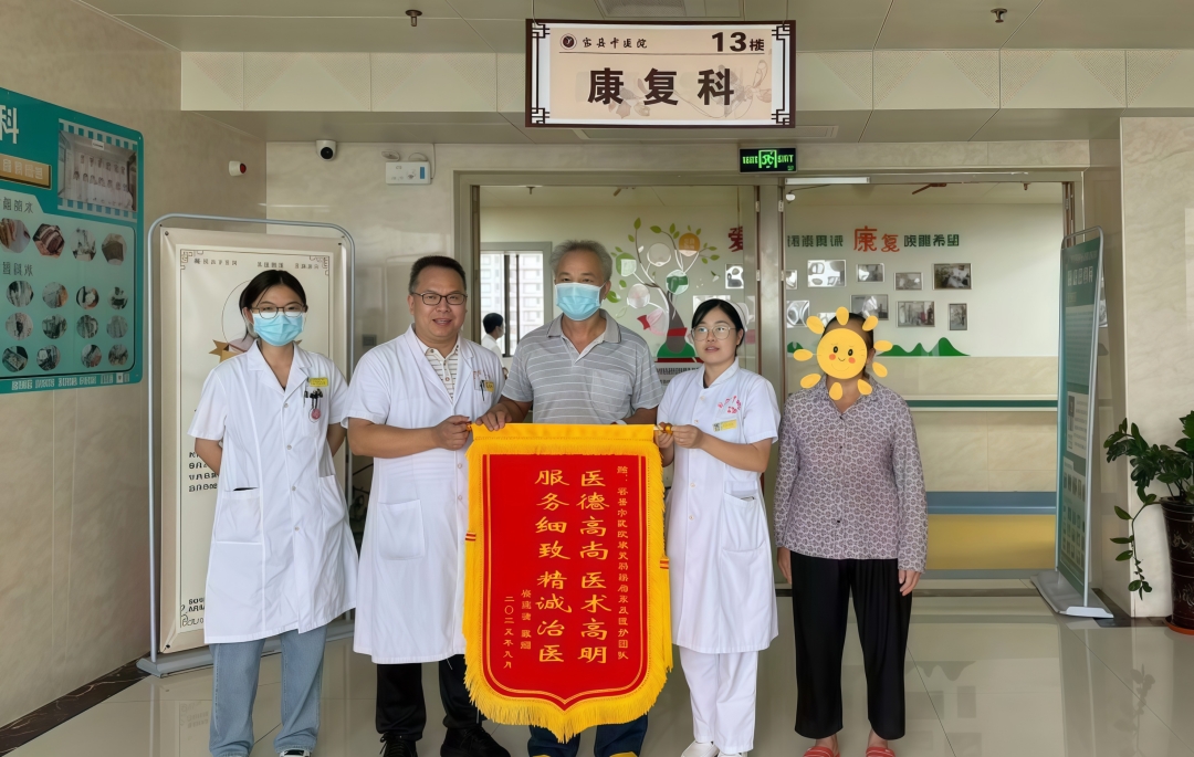 康复后的患者能够自主下床活动,高兴地表示:“是你们的妙手,让我过了一个安心的国庆节!”他带着家人特意前来赠送锦旗,上面写着“医术精湛,妙手回春”,表达对医护团队高超技术和贴心服务的由衷感谢。康复科:科学康复助回归,贴心服务获认可