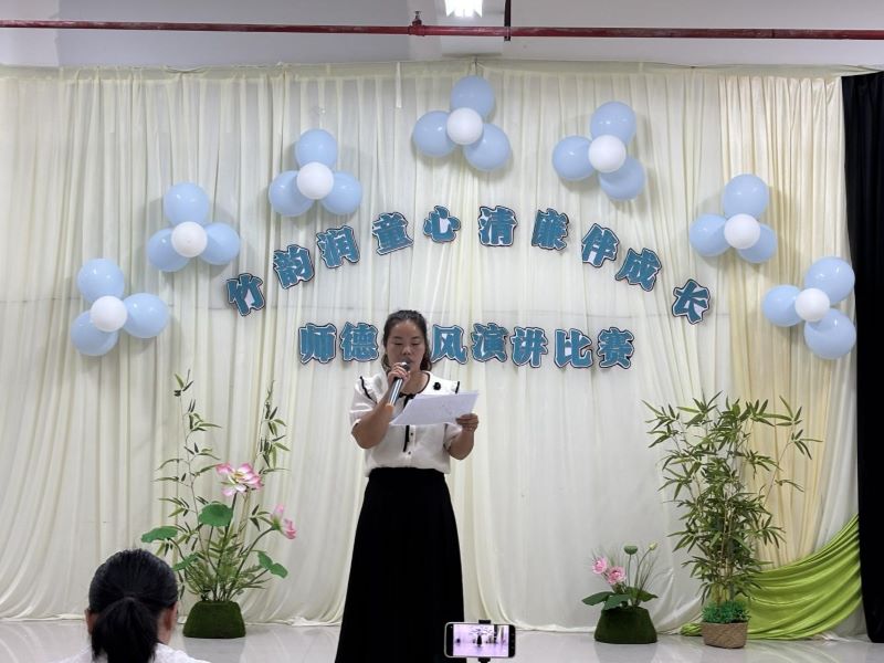 活动伊始,园领导着重强调了师德师风建设与清廉教育在幼教工作中的核心地位,比赛现场各位教师紧扣“竹韵”与“清廉”两大核心主题,以日常教学中的真实案例为切入点,将“清廉”从抽象概念落到具体行动。她们用亲身经历深刻剖析了对师德师风“清廉”内涵的理解;更以“竹笋破土的生机”为喻,抒发对幼教事业的赤诚热爱,坚定表达了以清廉师风培育和守护幼儿纯真心灵的决心。