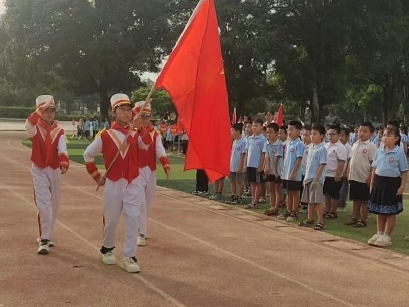 伴随着雄壮的国歌声,爱国情怀在心中激荡,为入队仪式拉开庄严序幕。