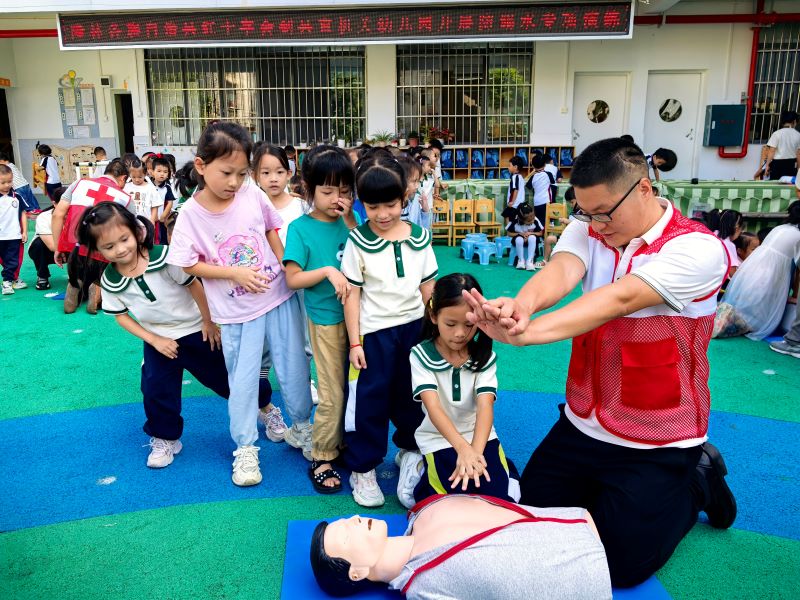 活动通过"讲解+宣誓+实操"的形式,让幼儿们在趣味互动中掌握"防溺水六不准"知识,在庄严宣誓中强化安全意识,在心肺复苏模拟练习中学习急救技能。