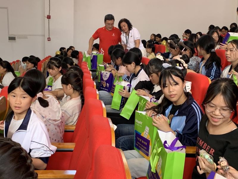 “青春大礼包” 是此次活动的暖心亮点。为让心理支持更有温度,筹备方精心准备这份礼物:内含关注青春期女生生理健康的卫生用品,解决日常不便;还搭配小巧精致的暖心小挂件,以可爱造型传递关怀,成为学子的 “情绪小伙伴”。当狮会成员递出礼包时,孩子们笑容灿烂,或抚摸挂件、或分享喜悦,让专业支持多了份牵挂与温暖。