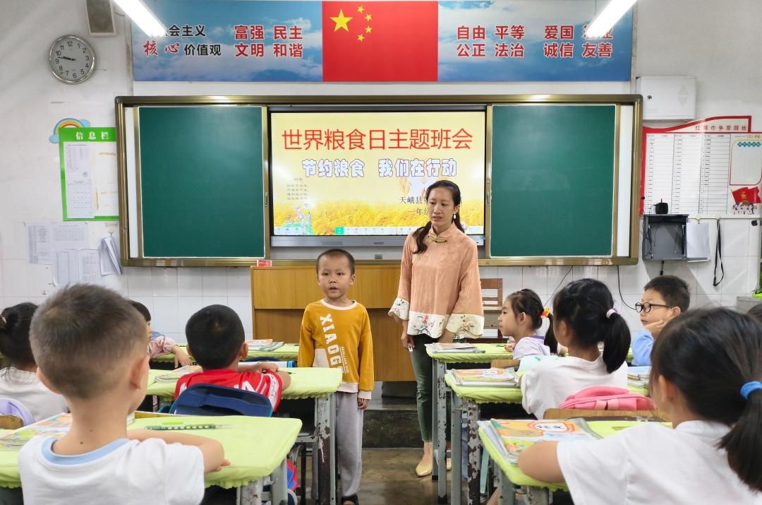 今日广西河池讯 10月16日,天峨县第二小学组织开展“节约粮食 杜绝浪费”主题班会活动,旨在促进学生爱粮惜粮和勤俭节约的良好习惯的养成。