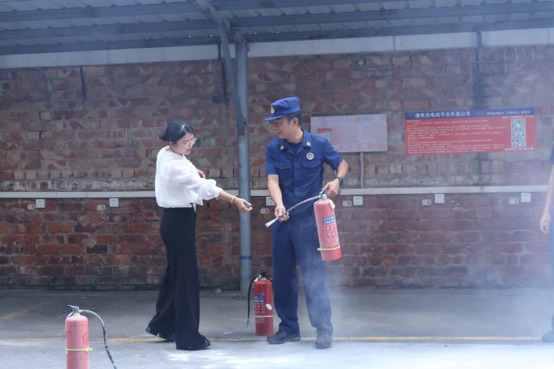灭火器实操演练环节,大队消防救援人员先向参训人员详细演示灭火器“提、拔、握、压”的标准操作步骤,并逐一讲解操作要点与注意事项。随后,参训人员轮流上前实操,消防员在旁全程指导,及时纠正不规范动作,帮助大家熟练掌握灭火技能,切实提升面对初期火灾的应急处置能力。