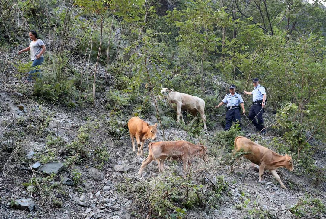 当天下午13时许,民警突然喊道:“有发现!”屏幕中,14头黄牛正在距离牛棚近20公里的山坡下“悠闲散步”。