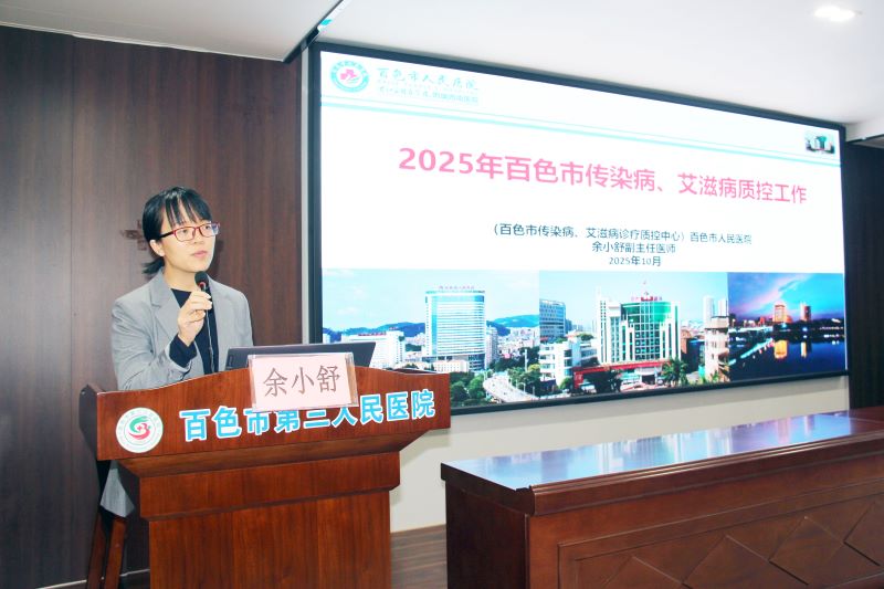 百色市人民医院感染一区副主任余小舒则围绕《2025年百色市传染病、艾滋病质控工作》解读和《丙肝诊治与管理》两个课题展开讲解。在质控工作解读中,余小舒副主任详细剖析了2025年全市传染病及艾滋病质控工作的新要求,明确了质控工作的重点方向;在丙肝诊治与管理授课中,她结合最新临床指南,分享了丙肝诊断、治疗方案选择及患者管理的关键技术和经验,为我院相关疾病的诊疗提供了重要指导。