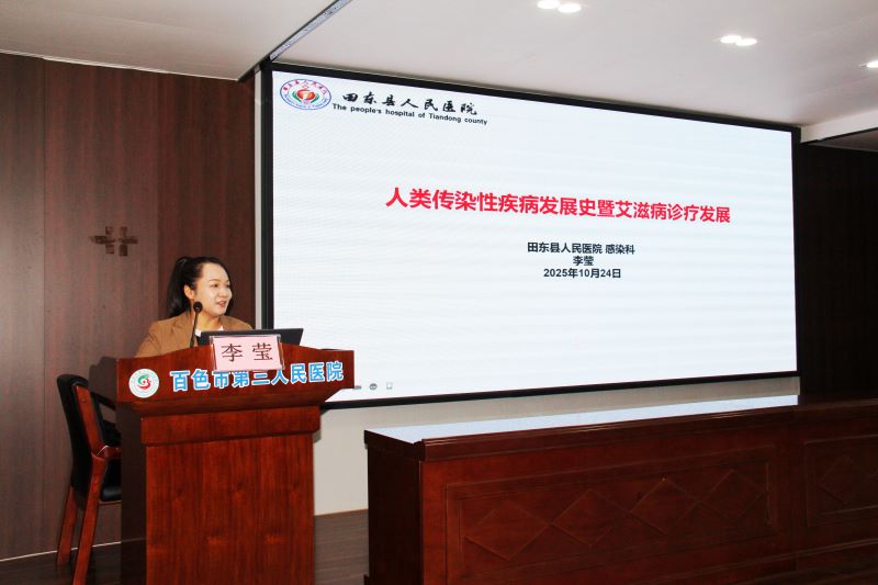 田东县人民医院感染科主任李莹以《人类传染性疾病发展史暨艾滋病诊疗发展》为题,从历史维度出发,重点阐述了艾滋病诊疗技术的发展脉络、当前诊疗现状及未来发展趋势,让参会人员对艾滋病诊疗有了更宏观、更深入的认识。