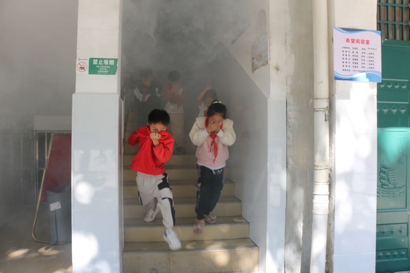 演练开始,随着警报声的拉响,各班级教师迅速组织学生按照预定的疏散路线,用手捂住口鼻、弯腰低姿有序撤离教室,前往操场集合,整个疏散过程紧张有序,全校师生全部安全到达指定地点,达到了预期的演练效果。随后,大队宣传人员根据学校火灾特点,结合近期发生的全国火灾事故案例,针对秋季火灾防控工作的重点,向师生们讲解了如何预防校园火灾事故的发生、如何查找校内火灾隐患、如何扑救初期火灾及火灾中如何自救逃生等消防知识。最后,开展灭火演练,宣传人员详细介绍了灭火器的种类、使用方法以及火灾初期的扑救技巧,并现场打开了教学楼消防栓的水带,进行了实地演示。在宣传人员的指导下,部分学生代表和教师代表亲自上阵,实践操作灭火器,体验了灭火的全过程。演练结束后,消防宣传员还带领师生们参观了消防车和各种消防装备。宣传员详细介绍了消防车的功能和各种消防装备的用途,如消防水枪、水带、空气呼吸器、破拆工具等,并现场演示了部分装备的使用方法。师生们纷纷近距离观察、触摸这些装备,对消防工作有了更直观、更深入的了解,也感受到了消防指战员的艰辛与不易。