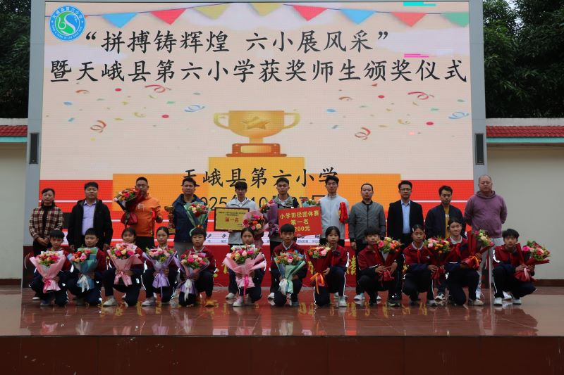 今日广西河池讯 近日,天峨县第六小学在县田径运动会上斩获佳绩,不仅以优异总成绩夺得全体赛第一名,更在多个单项赛事中摘得冠军,充分展现六小学子的体育素养与竞技精神。赛后,学校举行“拼搏铸辉煌 六小展风采”获奖师生颁奖仪式,为获奖运动员颁发荣誉。