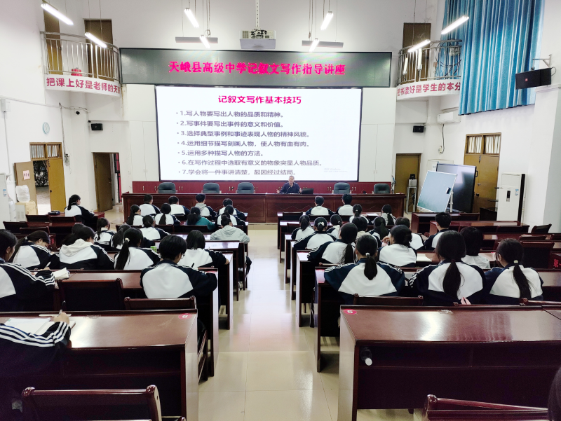 今日广西河池讯 10月24日,天峨县高级中学在学校阶梯教室举办记叙文写作指导讲座。