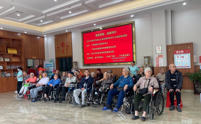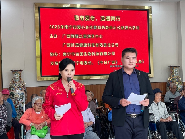 今日广西南宁讯 金秋十月,丹桂飘香。28日下午,一场洋溢着浓浓温情的“敬老爱老,温暖同行”大型公益演出慰问活动在南宁市鸿福呈祥养老服务中心温情上演。此次活动由南宁市多家爱心企业、爱心人士联合携手多家艺术团发起并精心筹备,不仅为院内的长者们献上了精彩的文艺表演,更带来了一份特别的健康关怀。