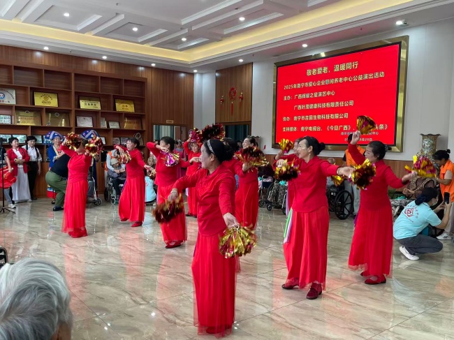 活动在经久不息的掌声与依依不舍的道别中落下帷幕,养老中心的长者们依依不舍地向爱心人士挥手告别,欢声笑语在养老中心久久回荡,这份金秋的暖意仍在延续。广西辉耀之星演艺中心的艺术总监杨晟说:今天的活动,不仅是一次慰问演出,更是一次爱的传递。我们期待通过这样的演出与陪伴,为长者的生活增添一抹亮色,让他们切实感受到社会大家庭的关怀与温暖。未来,我们将持续关注老年群体,开展更多形式的爱心活动。让老有所养、老有所乐的美好愿景在金秋的南宁城温暖生长,让尊老敬老的文明之风吹遍绿城南宁。(文/娜 娜)