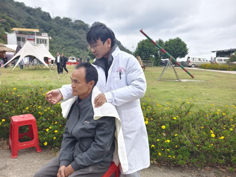 在活动中,还能看到穿着民族服饰的少数民族老人参与其中,医护人员充分尊重民族习俗,用专业且贴心的服务让他们感受到关怀。同时,卫生院还安排了中医理疗服务,医护人员通过推拿、针灸、拔罐、按摩等方式,为老人们缓解身体疼痛,让他们在重阳节体验到实实在在的健康呵护。