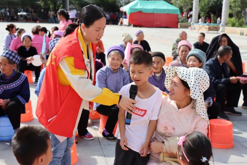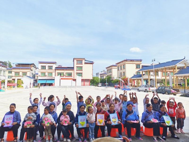 天峨县下老乡中心幼儿园小朋友走进下老村参与重阳节主题活动