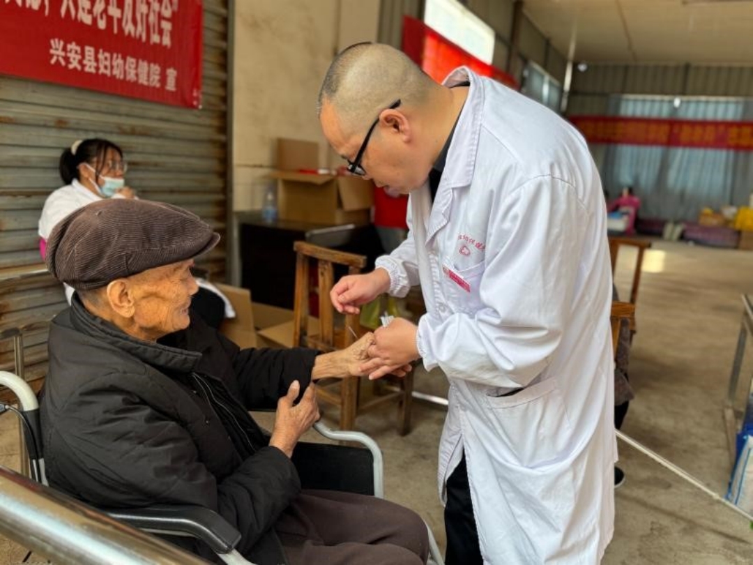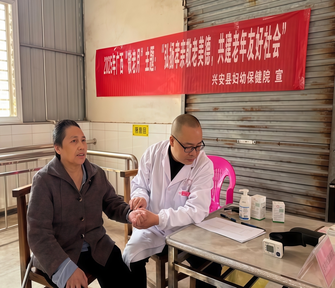 今日广西桂林讯 在重阳佳节来临、全国“敬老月”活动深入开展之际,为弘扬中华民族尊老敬老爱老助老传统美德,聚焦老年群体健康需求。10月29日,兴安县妇幼保健院组织相关科室业务骨干组成的医疗志愿服务队,走进兴安县崔家安心养老院开展以“弘扬孝亲敬老美德,共建老年友好社会”为主题的敬老月义诊活动,将优质便捷的医疗服务送到他们身边。