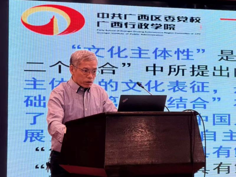 何成学研究员应激参加此次全国性高端学术研讨会并在大会上作学术主题演讲,发出了广西专家学者凝聚正能量的声音,充分展示了广西专家学者研究习近平有关第二个结合重要论述的学术成果和学术水准,扩大了广西专家学者在全国层面的学术影响力。
