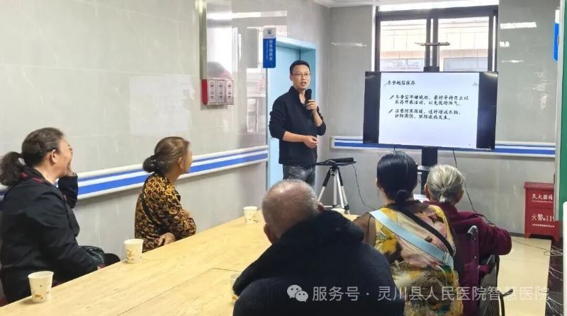 活动现场,科室主任蒋明华以“冬季中医养生”为核心,从中医“藏养”理论出发,结合老年群体常见的冬季畏寒、呼吸道不适、关节僵硬等问题,深入浅出讲解了起居保养、饮食调养、穴位护养等实用方法。从“冬吃萝卜夏吃姜”的食疗智慧,到睡前按揉涌泉穴的助眠技巧,每一个知识点都紧贴老人生活,赢得了患者和家属一阵阵热烈的掌声。