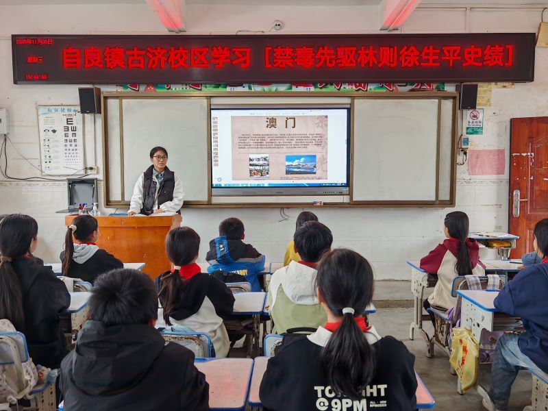 容县自良镇古济校区开展《禁毒先驱林则徐生平史绩》观影活动