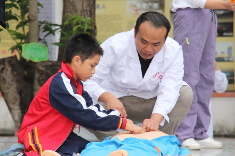学校师生们也踊跃报名参与实操,现场互动氛围高涨。医护人员逐个观察指导,及时纠正按压角度、力度等细节偏差。