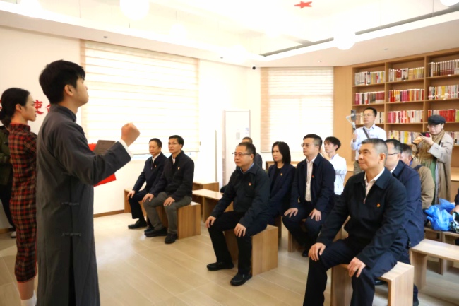 有关领导及与会代表共同观看国门微党课红色情景剧