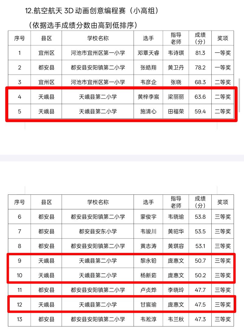 天峨县第二小学在河池市首届青少年航空3D动画编程赛中斩获多奖