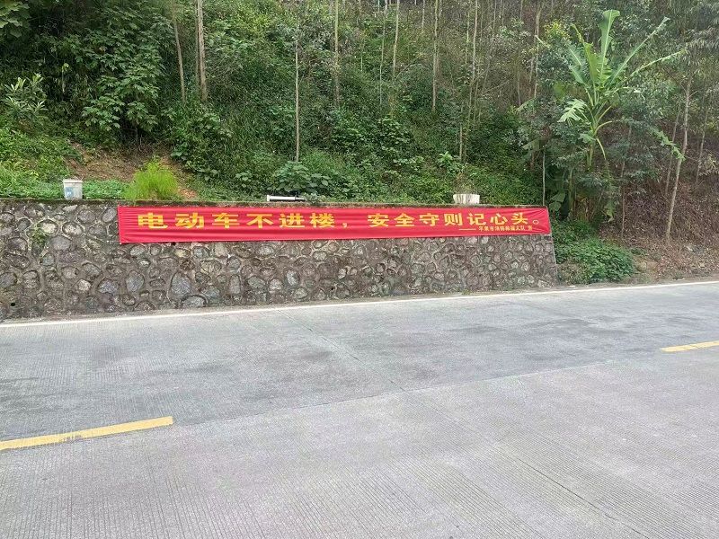 在各乡镇集市、村委会门口、居民楼出入口、主要交通路段等人员密集区域,消防员们有序悬挂起一批主题鲜明的消防宣传横幅。“电动车不进楼,安全守则记心头”“飞线充电危险大,火灾事故随时发”“老旧线路及时换,消除隐患保安全”“用火用电用燃气,用完随手要关闭”“小小烟头莫乱扔,防火安全记心中”……一条条简洁醒目、朗朗上口的标语,以直观的方式提醒着过往村民重视消防安全。红色的横幅在乡村街巷中形成一道“安全风景线”,让村民在日常出行中潜移默化学习防火知识。